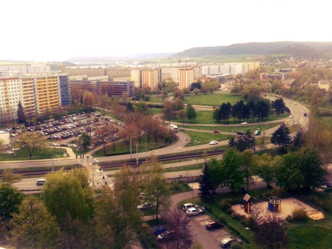 Многие считают, что в Германии все живут в миленьких пряничных домиках из сказки, но в реальности дома в спальных районах бывшей ГДР (да и в некоторых западных землях) выглядят примерно так: