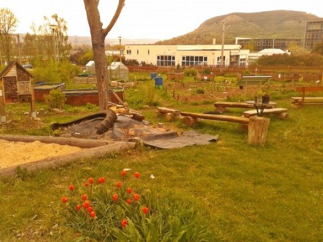 Сейчас тут есть немного строительного мусора от строящейся беседки (видно на фото выше) и растут лишь тюльпаны, но позже появятся огурцы, томаты, клубника и даже тыквы! При этом все официально: место для огорода согласовано с администрацией и поделено между всеми «фермерами» поровну. За участком приглядывают даже те, кто ничего не выращивает, и причина тому — уютное место для гриля, которым пользуются все.