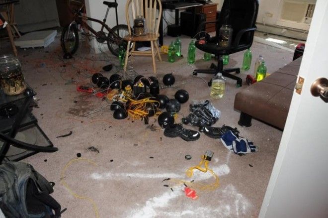 Россыпь пороха, предметы, похожие на бомбы... Нет, это не штаб-квартира террористов. Но от этого она пугает не меньше. Это - квартира Джеймса Холмса, человека, открывшего огонь в кинотеатре "Аврора" на премьере фильма "Темный рыцарь: Возрождение легенды". К счастью, во время допроса он признался, что квартира заминирована, и саперы смогли обеспечить беспрепятственный проход следователей в жилище убийцы.